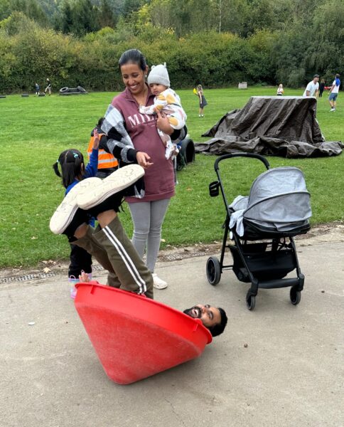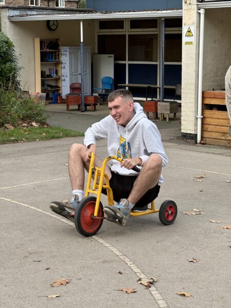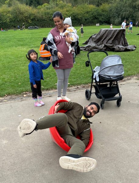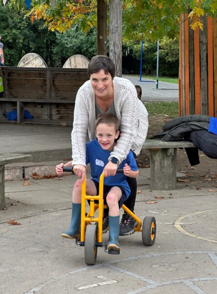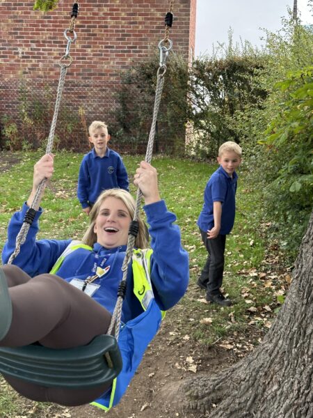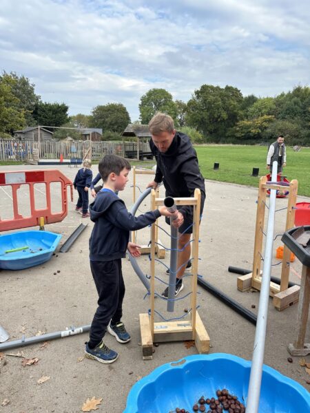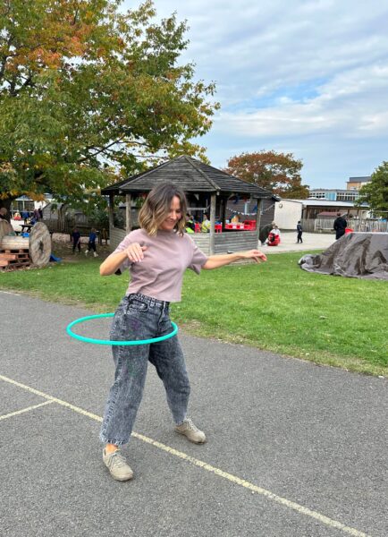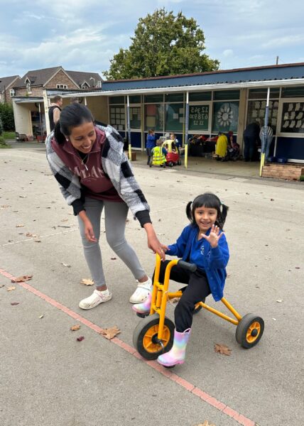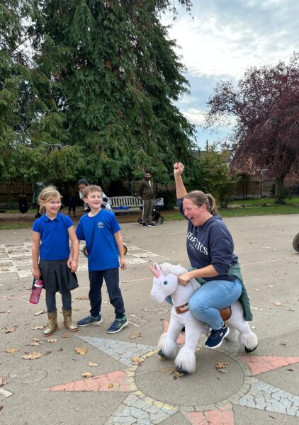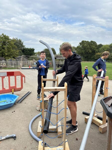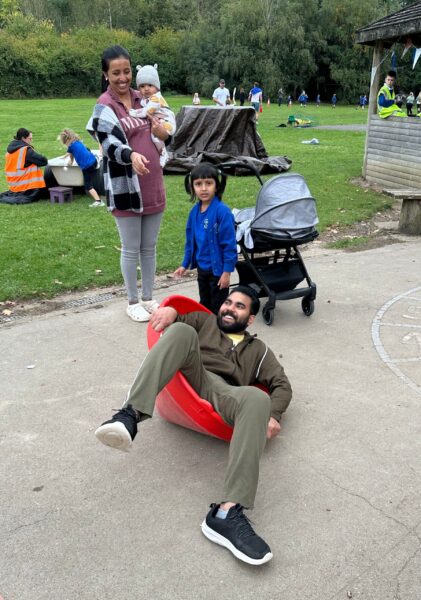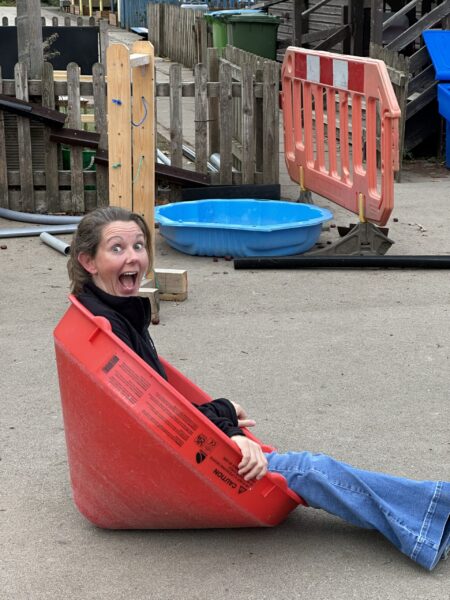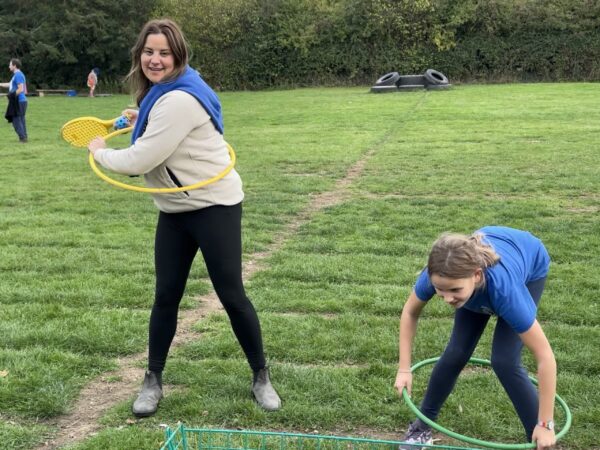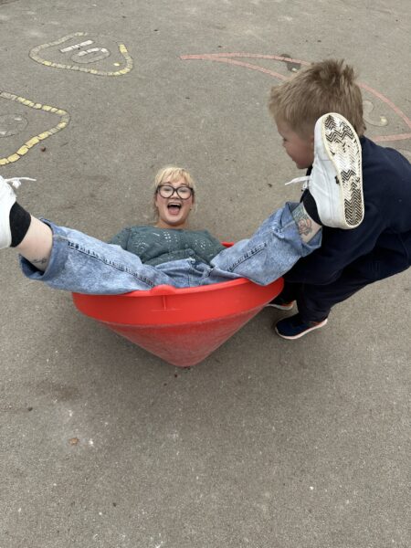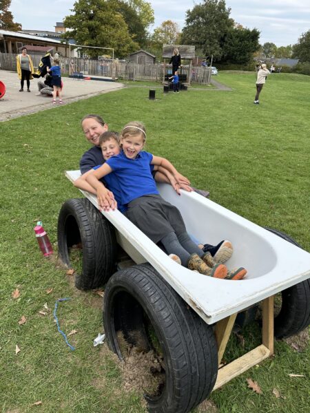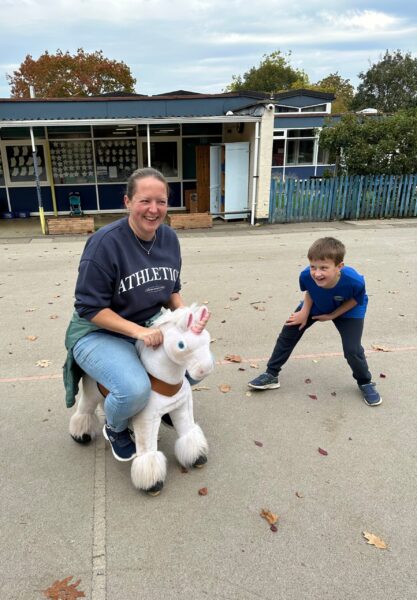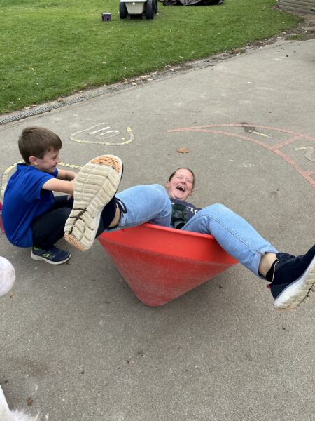 The session started in the school hall with a brief overview of OPAL led by Beth our play mentor. Then Mrs Hilditch spoke briefly about the rules and how we have taught the children to access the risk. Then the fun began, it was lovely to see so many parents joining in on the bikes, loose parts, building dens, hula hooping (although the census of opinion was adults need bigger hoops), with small play, lego, on the ride on unicorn and my personal favourite in the spinning tops – great fun was had by all especially the parents.